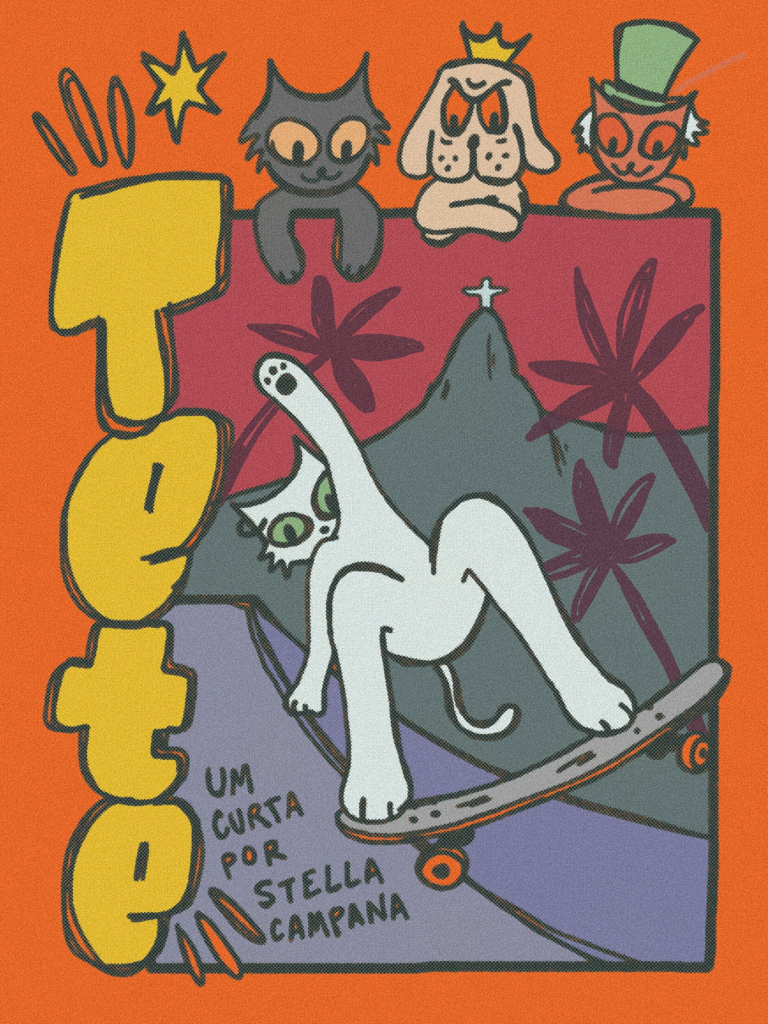 Tete is a cat fascinated by art, skateboarding, and her city, Rio de Janeiro. On a late summer afternoon, bored with the monotony of her room, she hits the streets for an adventure on wheels. Rolling past various tourist spots, dribbling around cars, and riding down hills, the kitten finds her peace. However, Tete didn't expect a mysterious portal right in the middle of the skatepark. Distracted while doing a trick, she falls into the hole and travels through different dimensions of animation. Confused and scared of losing the trace of her identity, a new adventure begins for Tete: finding her way back home.